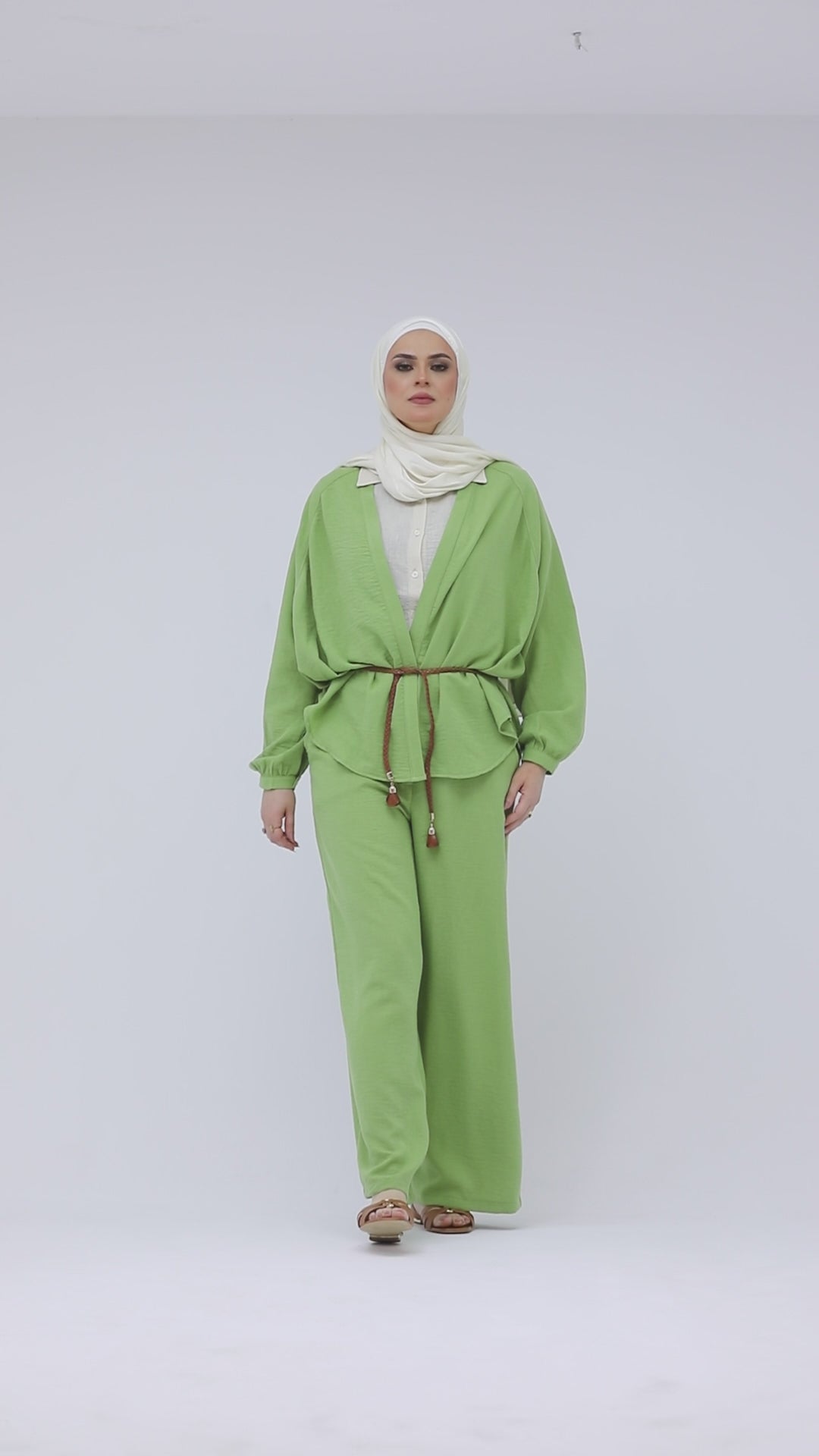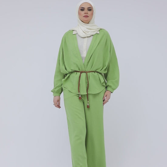 Green Comfy Suit with Leather Braided Belt